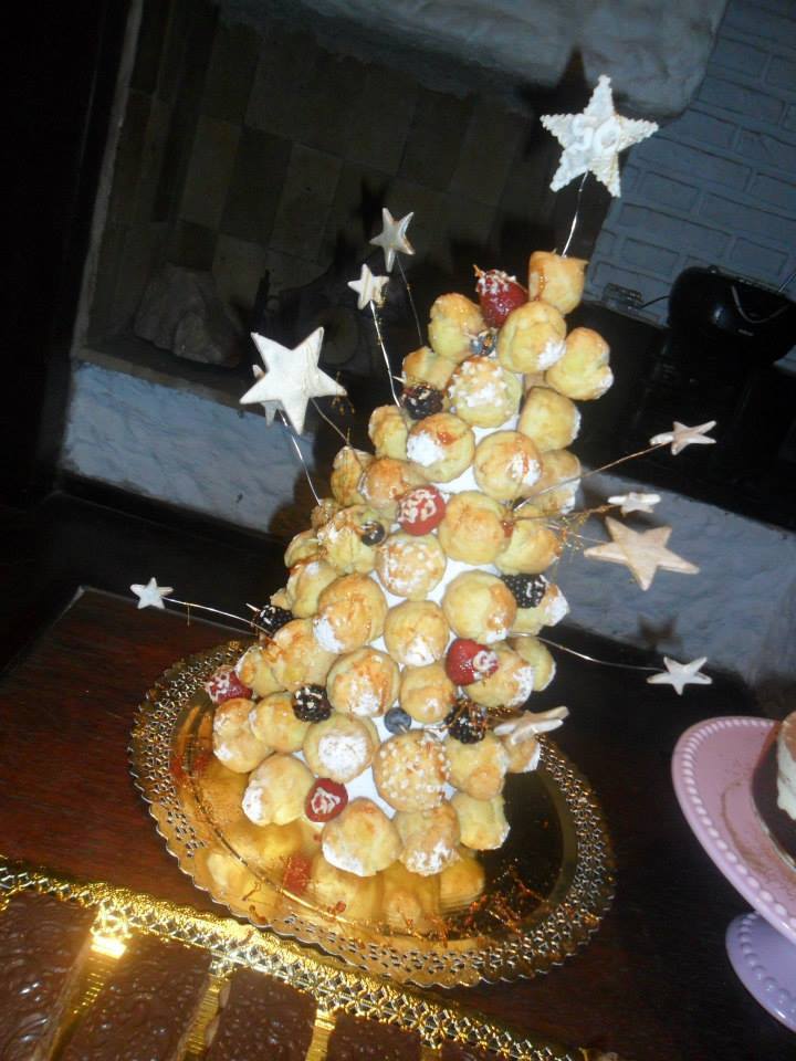 Torre de bombas de crema pastelera para 15, 20 personas con estrellas y frutos rojos (opcional, bañadas y con hilos de caramelo $380