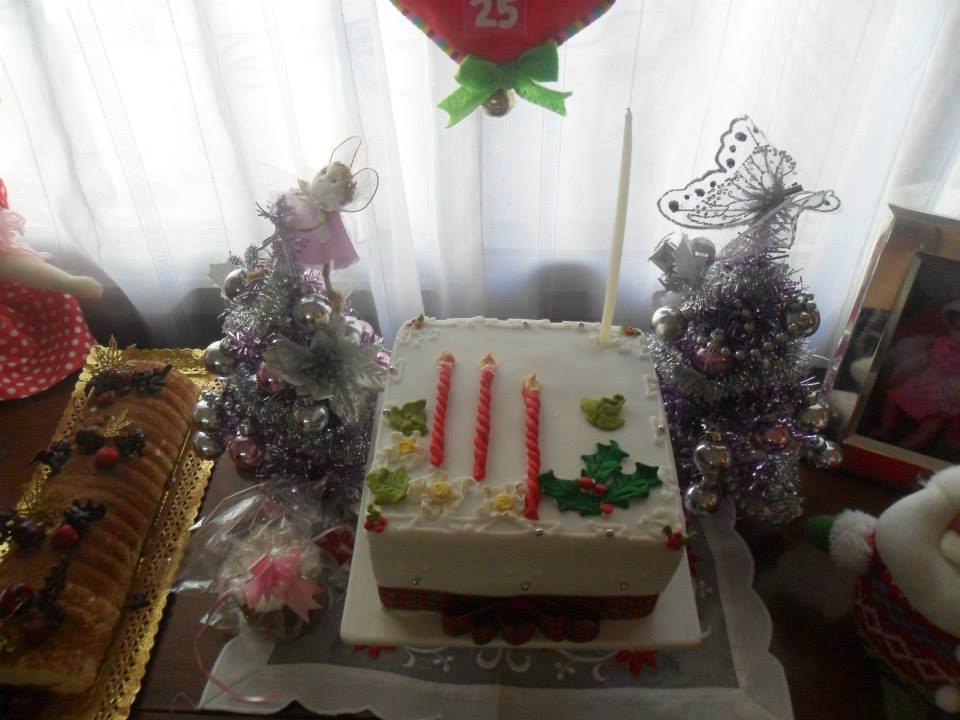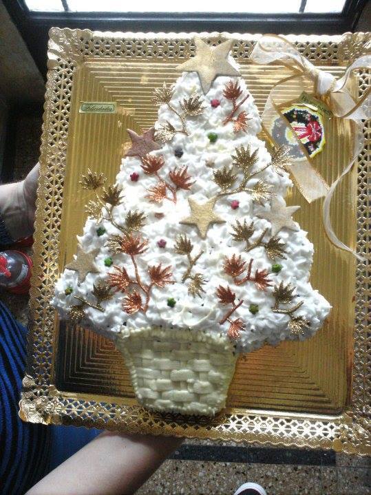 Torta navideña deco especial con pasta americana, cintas coloridas, masa de budín inglés especial, o torta galesa, $180 el kg. Mínimo: 2 kg.
