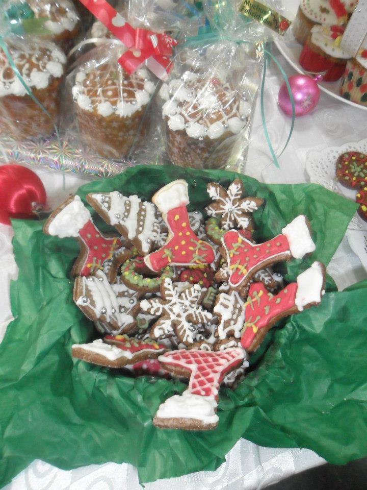 Mini budin inglés especial para regalar: decorados en glasé de colores, $12 c/u. Galletas navideñas de jengibre, miel y canela, decoradas en glasé de colores: $70 la docena