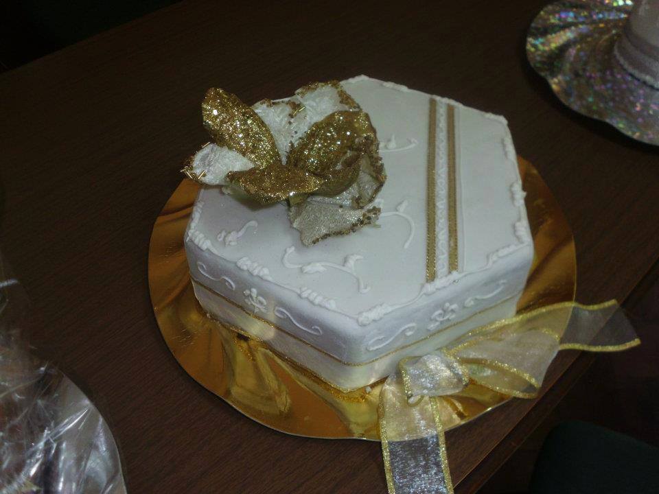 Torta Año Nuevo: torta galesa, decorada en pasta americana con detalles en glasé, cintas especiales y flor fantasía. Precio por kg. $180.